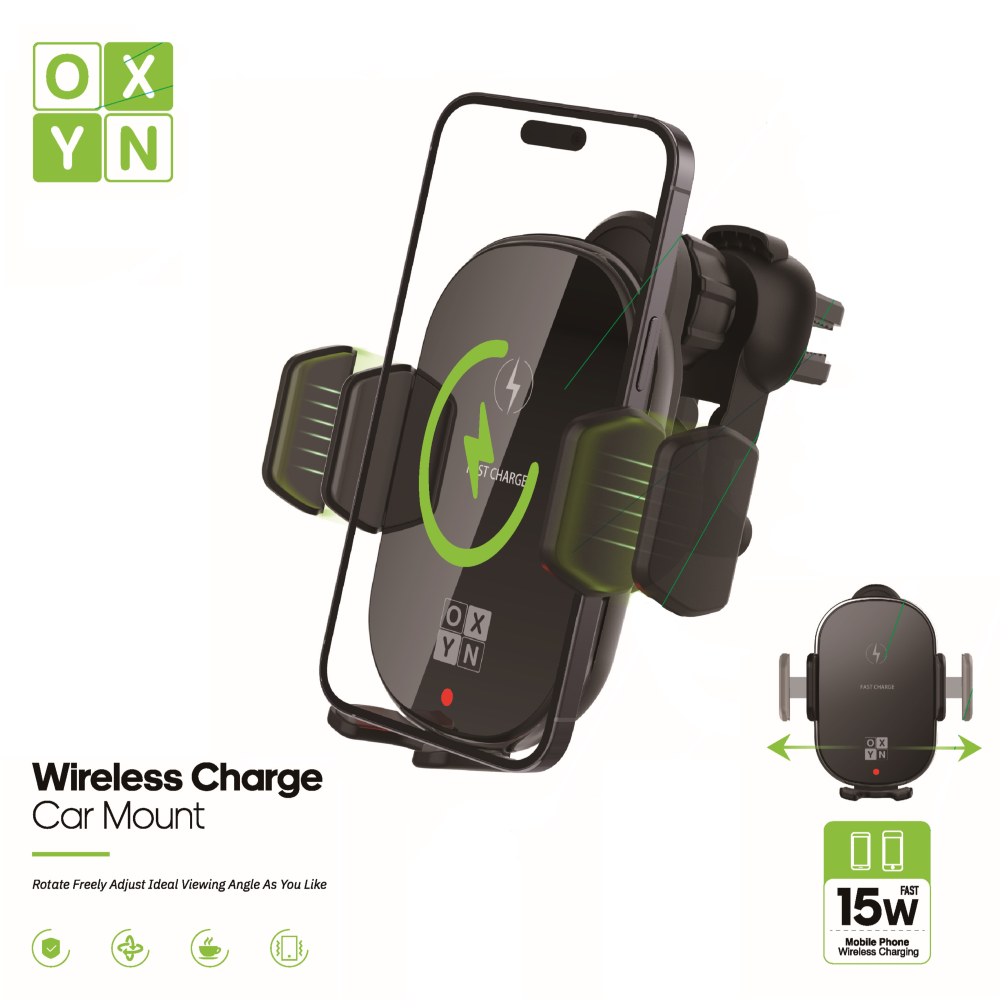 Rendi i tuoi viaggi più comodi e sicuri con il Supporto OXYN MC07 per smartphone, dotato di ricarica wireless integrata. Progettato per essere fissato saldamente alle bocchette dell'aria della tua auto, questo supporto permette una facile installazione e una ricarica rapida senza bisogno di cavi ingombranti.